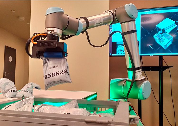 Uma característica deste projeto, que conseguiu implementar o grupo de pesquisa do Laboratório de Robótica Sberbank em conjunto com a equipe de Pesquisa da Microsoft, é baseada em inteligência artificial. Graças às redes neurais, o algoritmo aprendeu a mover sacos de moedas de até 6 kg usando uma instalação robótica. Acontece que tal tarefa é bastante difícil para um computador, pois, ao contrário dos sólidos, as bolsas com carga têm um formato instável. E durante o transporte, eles podem mudar o centro de gravidade devido às vibrações. Portanto, o computador é forçado a cada vez a reconhecer novamente a posição de sacolas individuais (já que podem ser localizadas aleatoriamente), calcular a trajetória da abordagem para que você possa pegar uma única sacola, movê-la, não tocar no carrinho e não deixá-la cair.