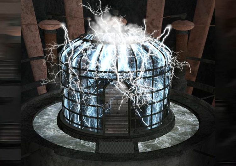 Representação artística da gaiola de Faraday. Fonte: BIBLIOTECA DE FOTOS DE VICTOR HABBICK VISÕES / CIÊNCIAS