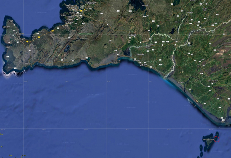 A Ilha Bjarnaray está circulada em vermelho no canto inferior direito do mapa. Fonte da imagem: Google Maps