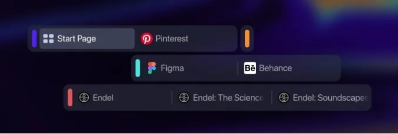 Cada ilha (grupo de abas) é marcada com uma barra vertical de alguma cor. Você pode expandir ou recolher um grupo com um clique na guia correspondente. Quando recolhido, cada grupo de abas é complementado por dicas, para que o usuário encontre facilmente a ilha desejada. O Opera observou que a nova abordagem para agrupar guias é “uma maneira natural de organizar as guias em grupos contextuais”.