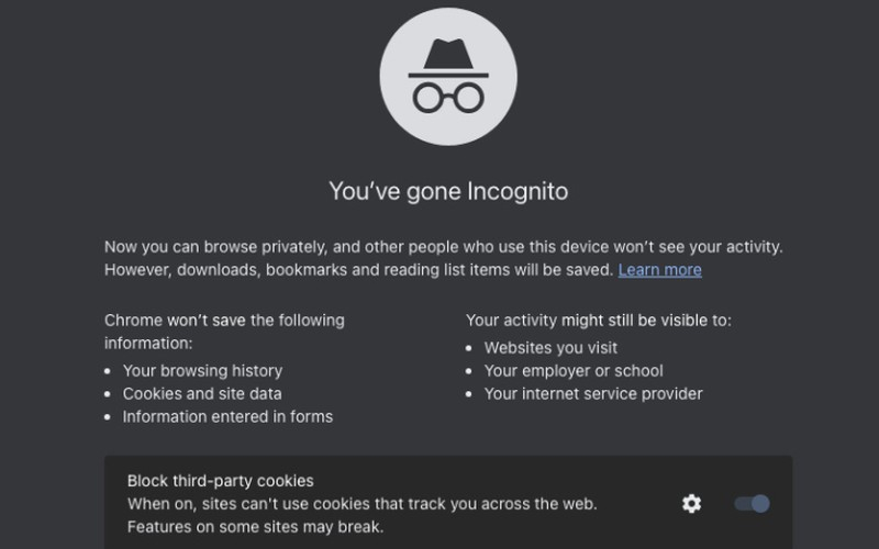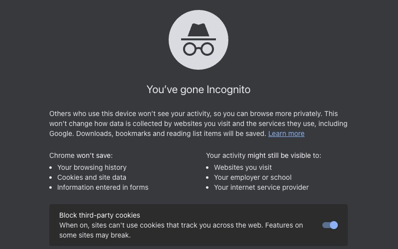 Mais informações sob a descrição do modo “incógnito” permanecem inalteradas. A atividade online do usuário ainda pode estar visível: