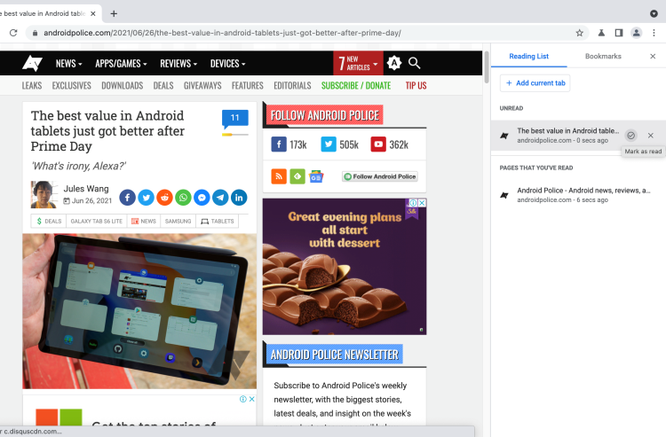Para adicionar um artigo à lista de leitura, basta clicar no botão de estrela no lado direito da barra de endereço e selecionar “Adicionar à lista de leitura” no menu de contexto que aparece. Esta abordagem permitirá no futuro obter acesso rápido a artigos que, por algum motivo, não puderam ser lidos imediatamente. Depois de ler o artigo, você pode removê-lo facilmente da lista.