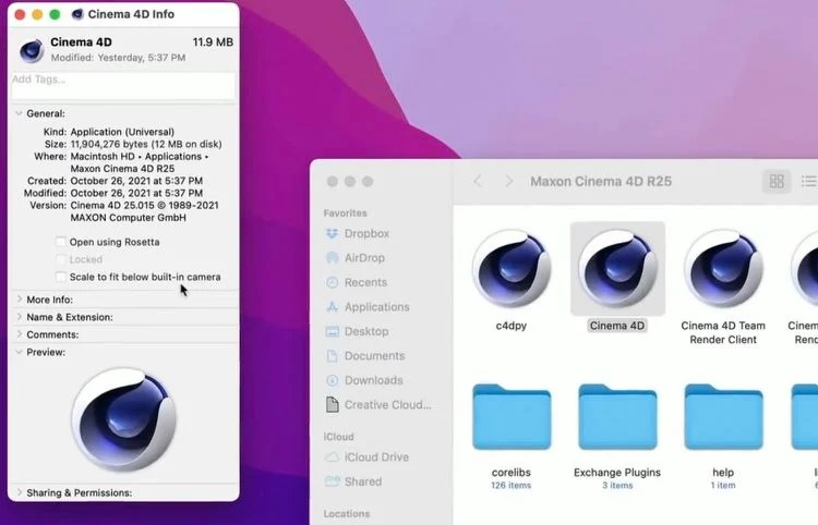 Para habilitar o zoom, os usuários simplesmente abrem o aplicativo Finder e clicam na seção Aplicativos na barra lateral esquerda. Em seguida, chame o menu de contexto para o aplicativo necessário e selecione o item “Obter informações”. Na janela de informações que se abre, marque a caixa “Ajustar à câmera embutida” e, nas execuções subsequentes, o programa se ajustará automaticamente para que o recorte da câmera não se sobreponha à barra de menu. Deve-se notar que devido a esta manipulação, a área útil da tela diminuirá ligeiramente.
