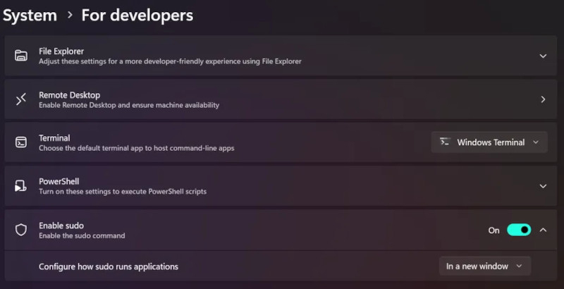 Sudo será controlado nas Opções do desenvolvedor em uma versão futura do Windows 11 (fonte da imagem: Microsoft)