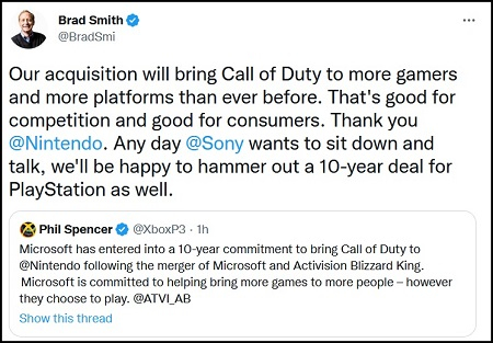 Garantias semelhantes a Microsoft fornecerá e a Sony Interactive Entertainment, mas o japonês платформодержатель não tem pressa para concordar. O presidente da Microsoft, Brad Smith (Brad Smith), disse que a empresa está pronta para subscrever este negócio “qualquer dia”.