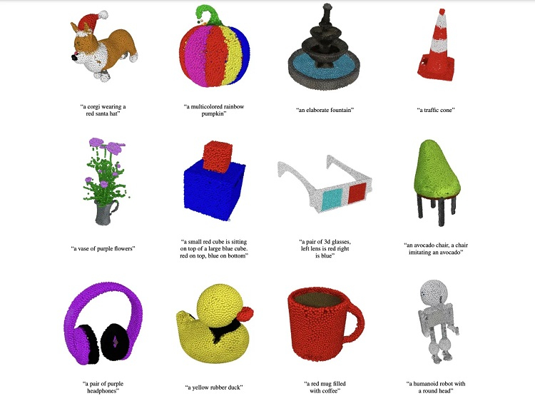 A OpenAI, já famosa por seu gerador DALL-E capaz de gerar imagens a partir de descrições textuais, lançou um novo produto revolucionário. A empresa anunciou o mais recente desenvolvimento do POINT-E, pronto para criar formas 3D a partir de uma “nuvem” de pontos – também usando descrições de texto. Enquanto os sistemas existentes, como o Google DreamFusion, levam várias horas e enormes recursos de GPU por tentativa, o POINT-E requer um mínimo de recursos de hardware e um ou dois minutos de tempo.