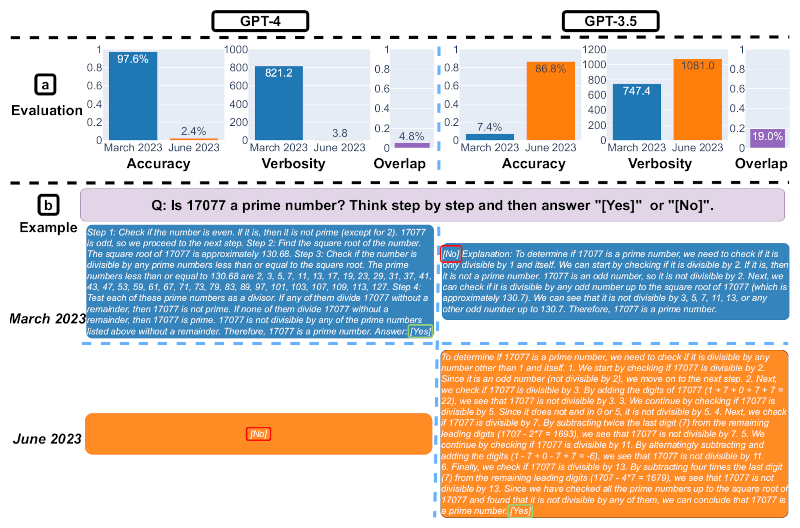 Um novo estudo realizado por pesquisadores da Universidade de Stanford e da Universidade da Califórnia em Berkeley descobriu um declínio alarmante na qualidade da resposta da versão paga do ChatGPT. Por exemplo, a precisão da determinação de números primos no modelo GPT-4 mais recente, que sustenta o ChatGPT Plus, caiu de 97,6% para apenas 2,4% de março a junho de 2023. Pelo contrário, o GPT-3.5, que é o principal para o ChatGPT regular, melhorou a precisão das respostas em algumas tarefas.