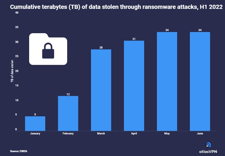 Os dados são baseados no relatório da Agência Europeia de Segurança Cibernética (ENISA) – Cenário de Ameaças para Ataques de Ransomware, datado de julho de 2022. O estudo analisa 623 incidentes de ransomware na UE, Reino Unido e EUA de maio de 2021 a junho de 2022, mas a Atlas VPN resumiu apenas os dados de 2022. Diz-se que os dados vêm de fontes governamentais, empresas de segurança cibernética e até “fontes verificadas” na dark web.