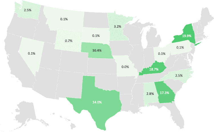 Uma guerra está se formando entre os estados americanos para atrair mineiros, com Nova York, Kentucky, Geórgia e Texas liderando o caminho. De acordo com o pool de mineração Foundry USA, 19,9% do hashrate americano de bitcoins – ou seja, o poder computacional total dos mineiros – está em Nova York, 18,7% em Kentucky, 17,3% na Geórgia e 14% no Texas.