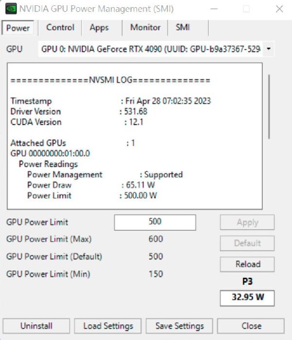 O NVPMM se integra à NVIDIA System Management Interface (SMI), que normalmente permite gerenciar e controlar GeForce, Quadro, GRID e até produtos Tesla. Além disso, se no SMI estamos falando de trabalhar com a linha de comando, o utilitário fornece uma interface gráfica. O painel de controle do GeForce já possui funcionalidade primitiva para gerenciamento de energia e taxa de quadros ao executar placas gráficas NVIDIA, mesmo no Windows 11 existem opções para limitar o consumo de energia dos aceleradores gráficos. No entanto, o NVPMM fornece controle em um nível mais granular.