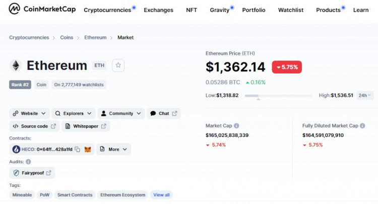 De acordo com a Forbes, citando a bolsa Coinmarketcap, “os preços do Ethereum caíram para US$ 1.436,18 nas últimas 24 horas”. Às 14h20, horário de Moscou, a criptomoeda caiu para US$ 1.460 – 7,8% mais barata que no dia anterior. De acordo com os dados mais recentes da mesma exchange no momento, a situação é ainda pior – a taxa do Ethereum caiu para US$ 1362,14.