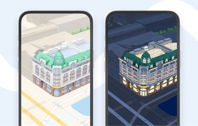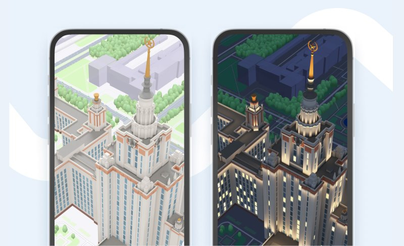 Para interagir com um modelo tridimensional de um objeto no Yandex Maps, basta encontrar o ponto de referência de interesse e aumentá-lo. Para visualizar um objeto não de cima, mas de lado, você precisará fazer um movimento paralelo de dois dedos para cima na tela. Usando dois dedos, você também pode girar o mapa, o que permitirá visualizar o objeto de diferentes ângulos.