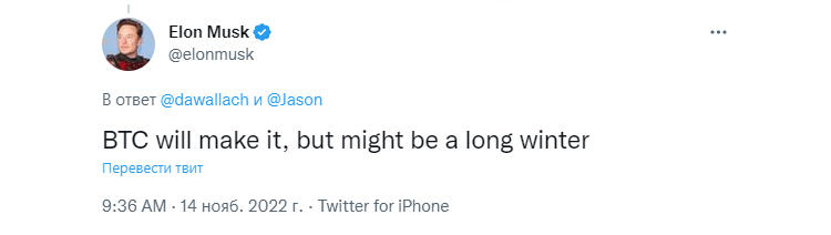 No dia anterior, Zhao falou sobre os planos de criar um fundo destinado a restaurar a indústria de criptomoedas, mas prometeu revelar todos os detalhes posteriormente. Uma declaração do chefe da maior bolsa do mundo foi suficiente para impedir o colapso do mercado de ativos digitais, que perdeu US$ 200 bilhões em capitalização de mercado devido a problemas de FTX. A onda positiva foi apoiada por Elon Musk, que disse no Twitter que o Bitcoin “fará, embora o inverno possa se arrastar” – e seu token favorito Dogecoin está crescendo pelo terceiro dia consecutivo.