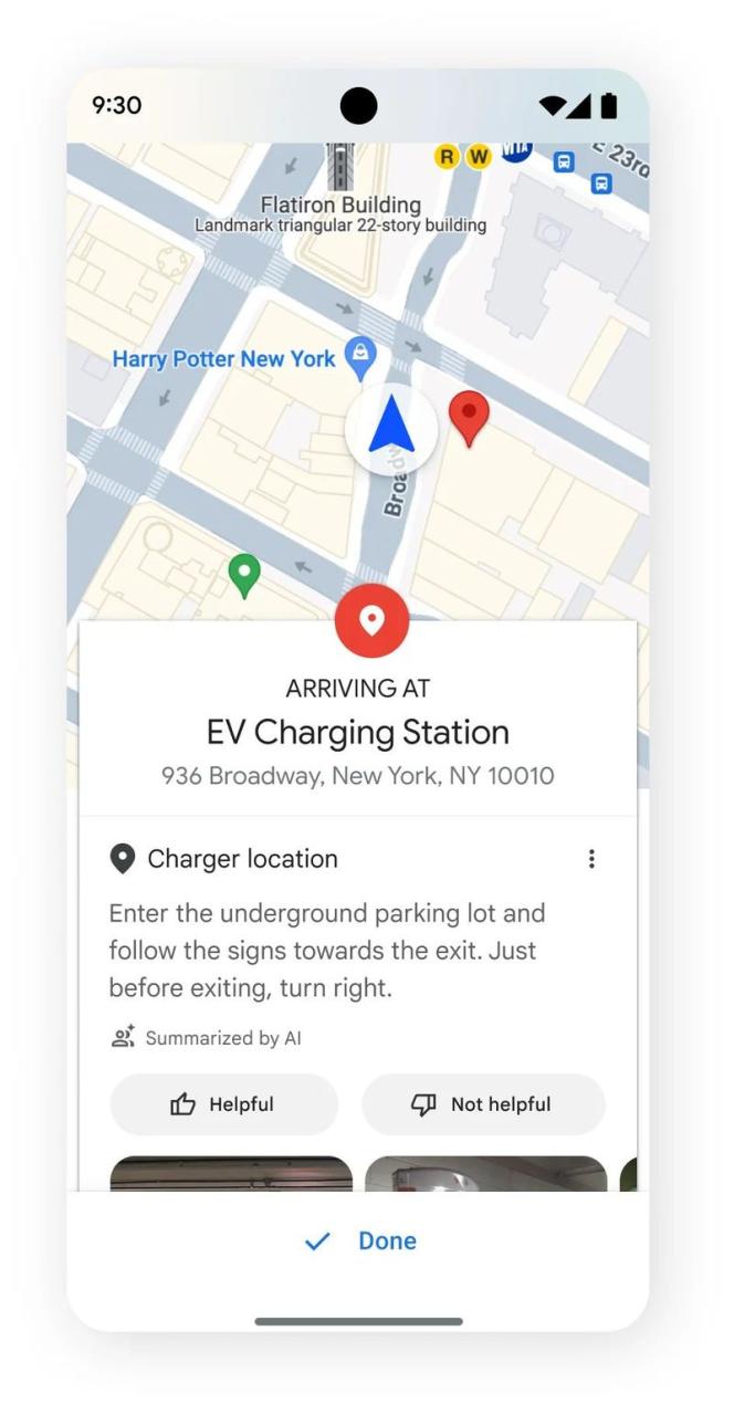 A última função é enfatizada separadamente. As estações de carregamento estão frequentemente localizadas em estacionamentos subterrâneos e outros locais onde não são fáceis de encontrar. O Google planeja incentivar os usuários a deixar comentários sobre eles, incluindo instruções de direção, velocidades e opções de cobrança. Caso o usuário tenha planejado uma parada, o Google Maps irá sugerir onde é melhor recarregar o carro enquanto ele estiver fora.