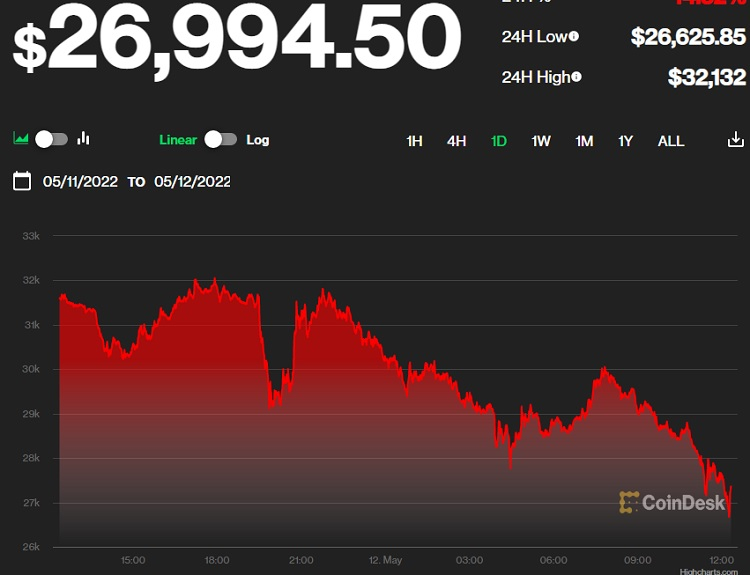 De acordo com o portal de notícias CNBC, na quarta-feira o preço do bitcoin no contexto de uma crise geral no mercado de criptomoedas, de acordo com a Coin Metrics, caiu 2,42% para US$ 28.716,15 e continua em declínio. A taxa de câmbio do Ether, seguindo os resultados das negociações de ontem, caiu 4,93%, para US$ 2.021,95.