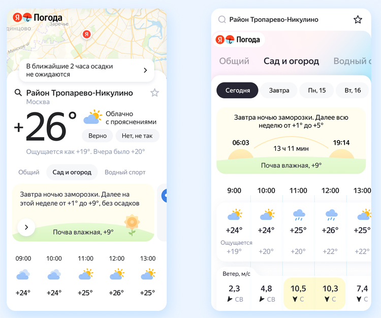 «Divulgamos uma previsão para os jardineiros para os feriados de maio, pois muitos irão para o campo. Haverá mais tais previsões no futuro. Os dados para os entusiastas de esportes aquáticos já estão sendo testados, então aparecerá uma previsão para pescadores, turistas, ciclistas e corredores. Graças à tecnologia Meteum, eles poderão aprender sobre o clima em qualquer ponto do mapa”, observa Yandex.
