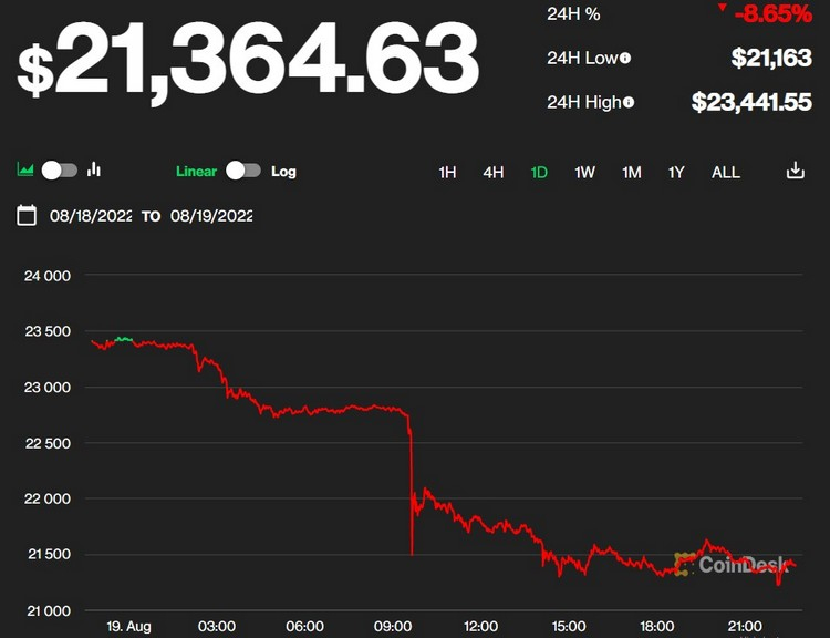 Os comerciantes de criptomoedas estão novamente vendo um declínio acentuado no preço do bitcoin, que seguiu o impulso geral do mercado e caiu 9,3% para mínimos de três semanas que caíram abaixo de US$ 21.400. Esta é a queda mais significativa em dois meses, pois a expectativa de um aperto da posição do Fed e a ação agressiva contra a inflação reduziram a confiança dos investidores em ativos de risco.