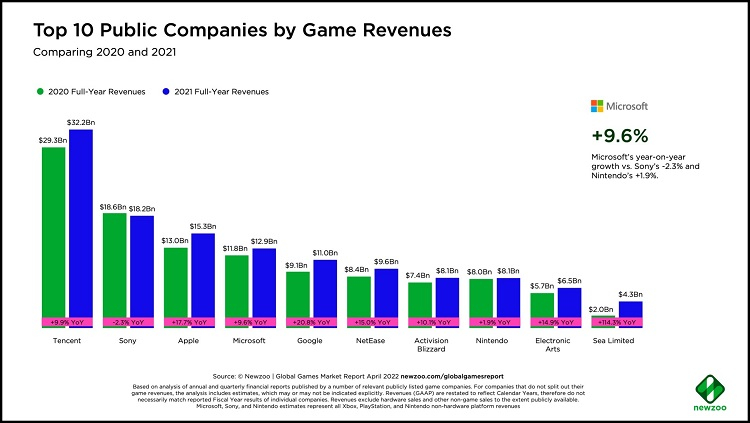 O chefe da Microsoft também nomeou a Sony, que recentemente fez várias aquisições de jogos, como líder do segmento, embora dados da empresa de análise Newzoo favoreçam a chinesa Tencent.