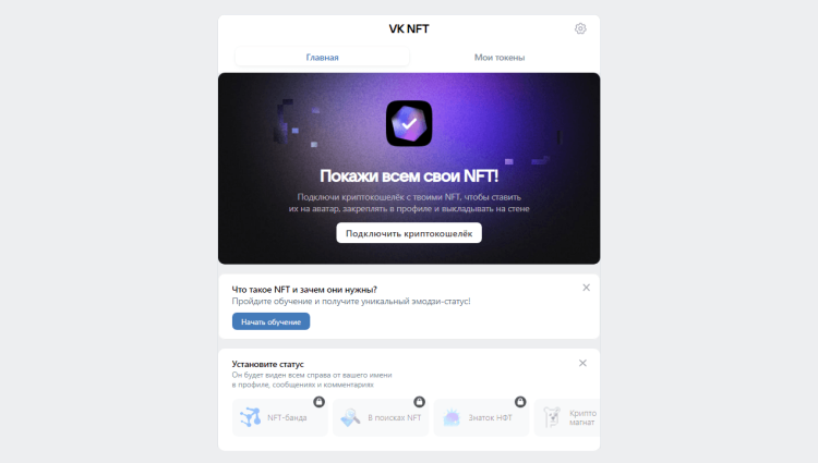 A rede social VKontakte anunciou o lançamento do serviço VK NFT, que ajudará os usuários a transferir os tokens NFT não fungíveis disponíveis para suas contas e usá-los como avatar ou para demonstração em uma vitrine especial no perfil. Para interagir com o serviço, você precisa vincular uma carteira de criptomoedas a um perfil de rede social.