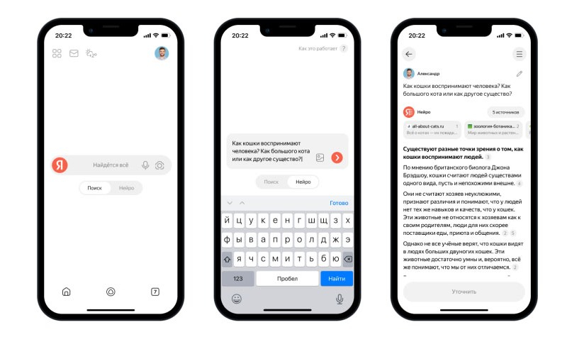 A peculiaridade do algoritmo é que ele extrai fatos não da memória de um grande modelo de linguagem, mas de fontes na Internet. Essa abordagem garante que a Neuro forneça informações novas e relevantes em suas respostas. O serviço complementa suas respostas com links para fontes, localizadas em um bloco separado acima do texto. Isso permite que os usuários, se necessário, verifiquem fatos ou estudem com mais profundidade um tema de interesse.