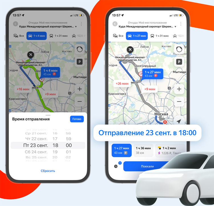 Anteriormente, era possível ver a duração de uma viagem futura apenas construindo uma rota no transporte público. E agora também está disponível para quem vai dirigir seu próprio carro.
