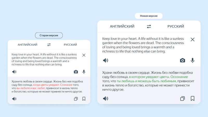 A Yandex melhorou a qualidade de seu serviço de tradução automática por meio do treinamento adicional de sua rede neural subjacente usando o grande modelo de linguagem YandexGPT. Como resultado, o Yandex Translator começou a navegar melhor no contexto, nas unidades fraseológicas e no vocabulário profissional.