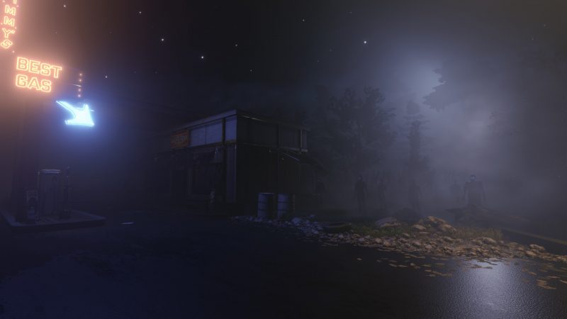 Literalmente, cinco minutos após o início (ou meia hora, se você não adivinhar imediatamente que precisa sacudir cada mesa de cabeceira), o herói se depara com silhuetas escuras ameaçadoras. Eles não fazem nada, apenas ficam imóveis no escuro, piscando com olhos azuis ardentes. “Nada incomum”, o protagonista aparentemente varre a cabeça vazia. Dou crédito aos artistas: com um componente técnico muito fraco, eles conseguiram obter uma imagem muito atmosférica.