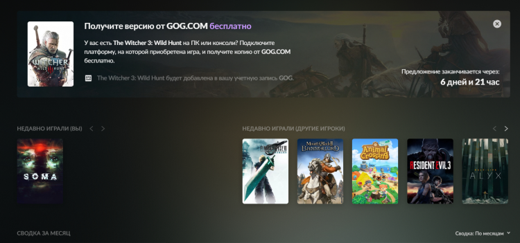 Uma promoção bastante incomum começou no GOG.com. A loja distribui The Witcher 3: Wild Hunt gratuitamente para usuários que compraram o jogo em uma plataforma diferente. A oferta se aplica a quase todas as versões do projeto – PCs (Epic Games, Steam, Origin), Xbox One e PlayStation 4. A única exceção é The Witcher 3 no Nintendo Switch.