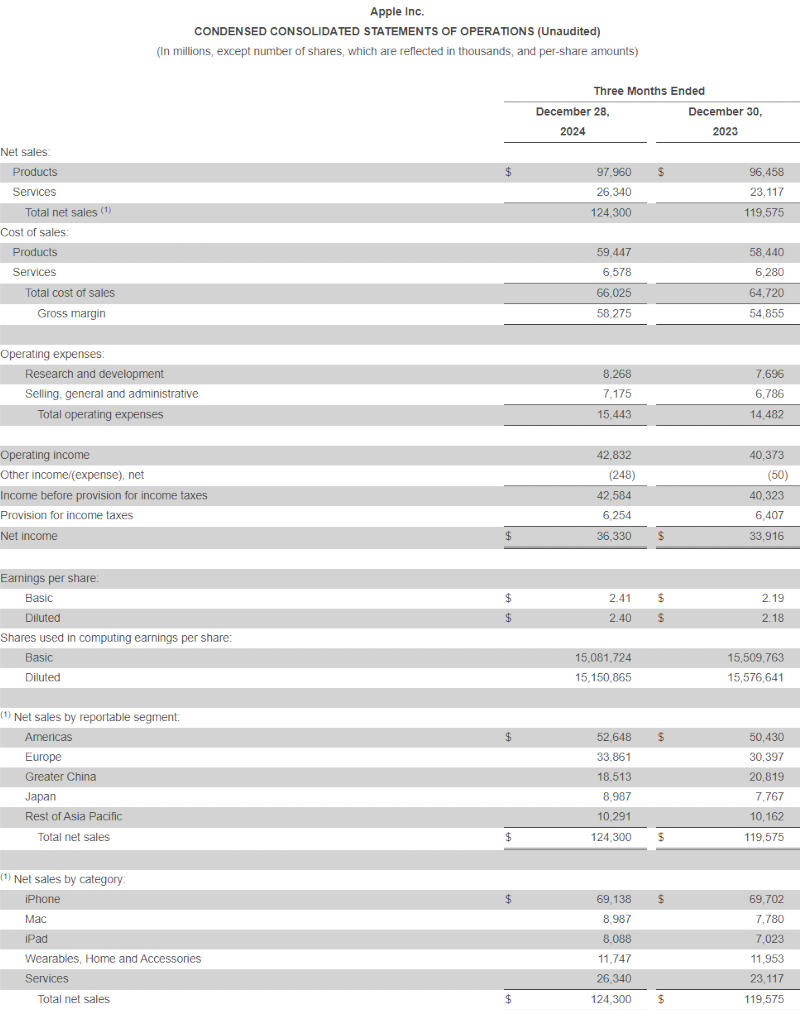 A Apple também conseguiu obter um lucro bruto recorde – totalizou 46,9 %, e este é o indicador mais alto da história da empresa; O recorde anterior foi estabelecido durante o trimestre, que terminou em março de 2024, e esse indicador atingiu 46,6 %. No trimestre atual, a Apple pretende ter lucro bruto de 46,5 % a 47,5 %.