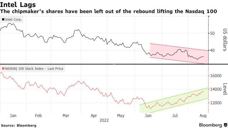 Os títulos da Intel ficaram visivelmente atrás dos ativos de outras empresas incluídas no índice Nasdaq 100: depois de 16 de junho, o índice subiu e já ganhou 21%, refletindo o otimismo dos investidores em relação à inflação e à situação econômica como um todo. A Intel, por outro lado, se viu no mesmo time com outros cinco jogadores, cujas ações continuaram caindo após a data significativa.