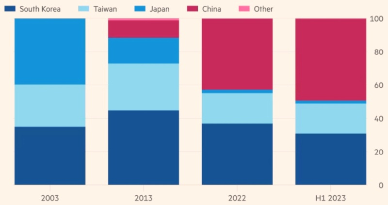 A Samsung fechou sua última fábrica de telas LCD na China em 2021, e a LG está atualmente tentando se desfazer de uma instalação semelhante. “A enorme expansão da capacidade de produção de painéis na China e a consequente competitividade de preços forçou os fabricantes de painéis coreanos a abandonar a cadeia de fornecimento de LCD sob a pressão das perdas”, segundo analistas da empresa de consultoria TrendForce.