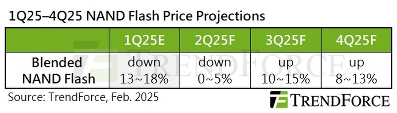 Por volta de 2025, os fabricantes de NAND farão cortes de produção mais agressivos para reduzir rapidamente os desequilíbrios do mercado e estabelecer as bases para uma recuperação de preços. Além disso, a atual política de subsídios para substituição de smartphones da China estimula efetivamente as vendas de smartphones e acelera o esgotamento dos estoques de memória NAND.