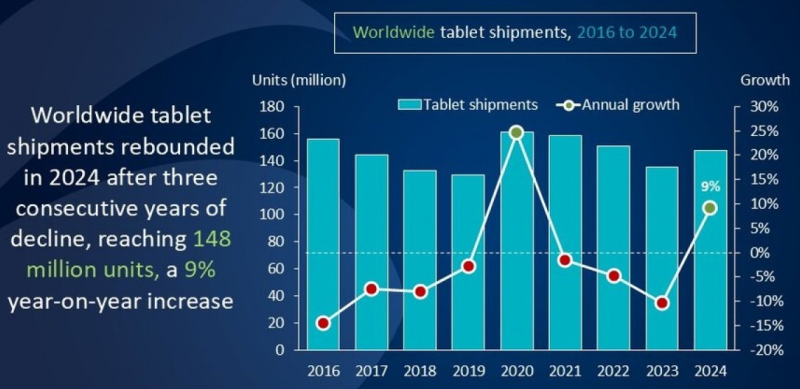 De acordo com os analistas da Canalys, o ciclo de atualização do PC World influenciou positivamente a demanda por comprimidos em todo o mundo. Espera -se que a demanda corporativa por tablets cresça em 2025, enquanto o transporte para os consumidores finais provavelmente diminuirá.