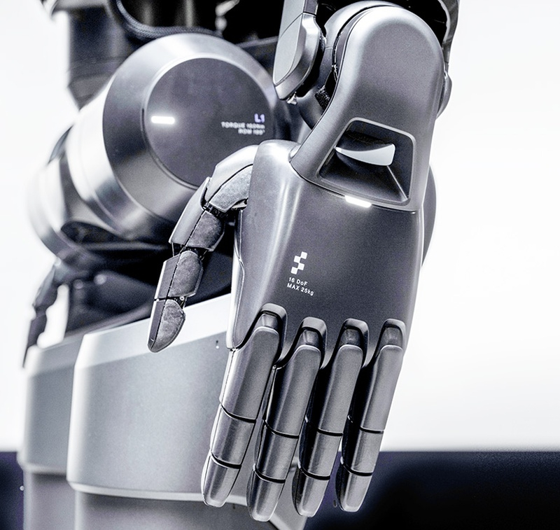 A Figure AI prestou grande atenção ao desenvolvimento de manipuladores. A versão mais recente possui 16 graus de liberdade e é capaz de transportar até 25 kg. A “mão” do robô é semelhante à de um humano, com quatro dedos e um polegar oponível. A Figure AI estabeleceu como objetivo alcançar a funcionalidade completa de uma mão humana a partir de seu manipulador. Cada dedo é acionado por um sensor integrado e uma unidade motora. O novo design do pulso oferece uma amplitude de movimento semelhante à do seu homólogo humano.