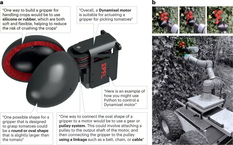 Cientistas suíços e holandeses testaram a capacidade do grande modelo de linguagem ChatGPT-3 de atuar como um gerador de ideias de engenharia. Trabalhando lado a lado, humanos e “robôs” projetaram, construíram e testaram uma colhedora robótica de tomate dos arbustos. Esta é a primeira vez na história que a IA escolheu uma meta prioritária para o desenvolvimento de um robô e levou a equipe ao resultado passo a passo.