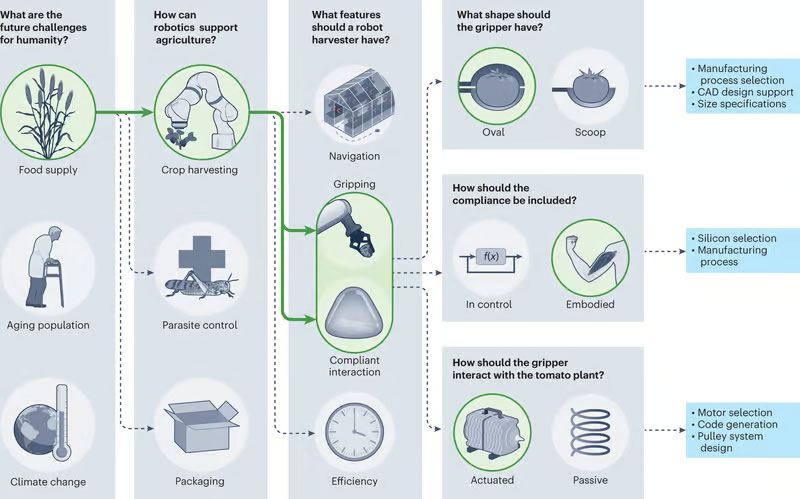 Os pesquisadores fizeram perguntas sequencialmente ao ChatGPT-3 e escolheram as opções que levariam o projeto na direção certa. Por exemplo, entre as três respostas à pergunta sobre os problemas futuros da humanidade, foi escolhida a direção da segurança alimentar. Em seguida, o chatbot sugeriu a escolha do desenvolvimento de uma colhedora de tomate, e assim sucessivamente, até que o resultado final fosse um robô colhedor com manipulador soft-grip. Os detalhes técnicos e a otimização do código foram fornecidos por humanos, enquanto o ChatGPT-3 forneceu materiais e opções para os nós do robô. Os pesquisadores nesses campos não tinham experiência e escolheram entre as ofertas do chatbot.