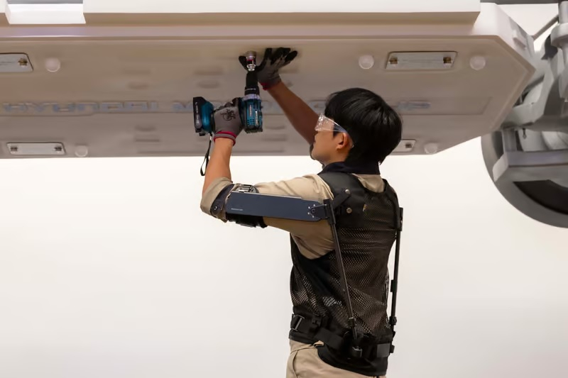 A Hyundai Motor Company e a Kia Corporation uniram-se para criar o X-ble Shoulder, um robô vestível concebido para melhorar a produtividade das pessoas e, ao mesmo tempo, reduzir lesões músculo-esqueléticas e fadiga. O exoesqueleto foi projetado para ajudar os trabalhadores a realizar várias tarefas suspensas, como mecânica embaixo de um carro. Pode reduzir a carga sobre os ombros em 60% e a tensão nos músculos deltóides dos braços em 30%.
