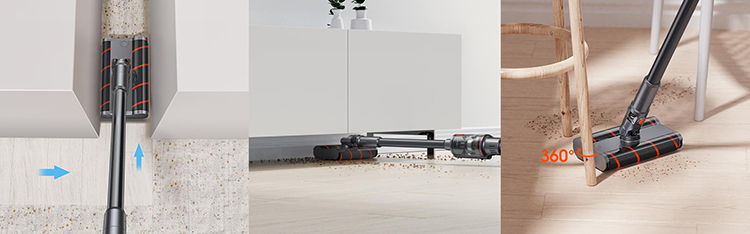 Com o ILIFE H11, são fornecidos acessórios e bicos adicionais, com os quais você pode penetrar nos cantos mais isolados da sala. O aspirador de pó pode efetivamente limpar poeira e detritos de carpetes e pisos, bem como móveis e paredes, e uma escova macia dupla com rolos que podem ser movidos em qualquer direção ajuda a remover pêlos de animais em um movimento.