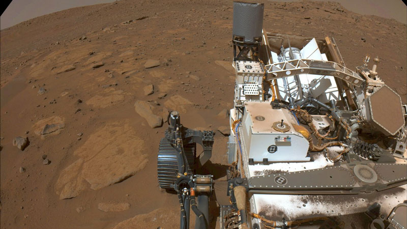 O rover Perseverance enviou uma foto de seu estacionamento temporário. Fonte da imagem: NASA/JPL-Caltech