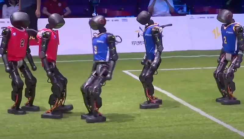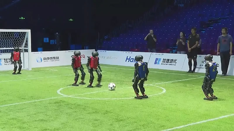 Um torneio de futebol único envolvendo robôs humanoides ocorreu na capital da China. Sem qualquer intervenção externa, os robôs, controlados apenas por inteligência artificial, manobraram habilmente, pegaram a bola e marcaram o gol. Quatro times chineses que passaram da fase classificatória participaram da final.