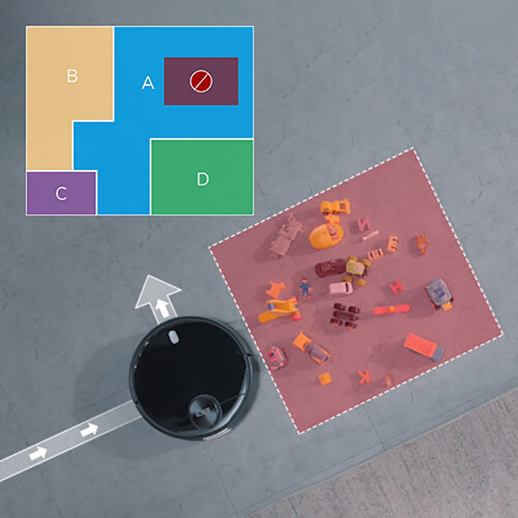 Na construção de um mapa, é utilizado o algoritmo SLAM (Simultaneous Localization and Mapping), que é utilizado em outros modelos de limpadores robóticos, bem como em sistemas não tripulados. Até 20 mapas de salas diferentes podem ser armazenados na memória do dispositivo. A limpeza pode ser controlada através de uma aplicação que permite “construir” paredes virtuais que limitam a área da divisão a limpar. O limpador do robô também possui sensores que protegem o dispositivo de colisões com obstáculos e quedas de escadas ou mudanças de altura.
