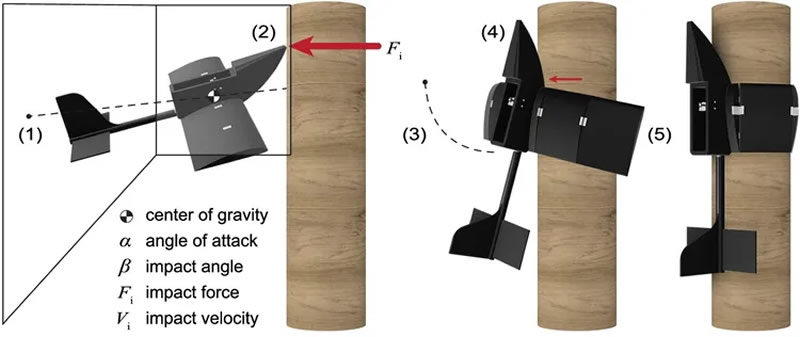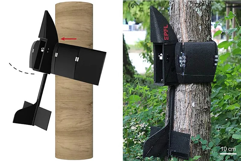 Inspirados na agilidade dos morcegos e das corujas, pesquisadores da École Polytechnique Fédérale de Lausanne (EPFL), na Suíça, equiparam o drone com asas articuladas de dupla finalidade, que podem ser rígidas para o voo ou flexíveis para suporte de preensão.