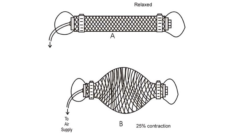 Os membros do Protoclone são controlados por mais de 1.000 músculos artificiais, chamados atuadores McKibben. Esses são músculos pneumáticos artificiais que receberam esse nome em homenagem a Joseph McKibben, que os desenvolveu na década de 1950 para fins ortopédicos. Eles são amplamente utilizados em robótica, engenharia biomédica e indústria devido à sua alta flexibilidade e resistência. Os “músculos” são tubos elásticos envoltos em uma trança rígida. Quando o ar comprimido é fornecido ao tubo, ele incha no centro devido à trança e se contrai, colocando as unidades associadas em movimento.