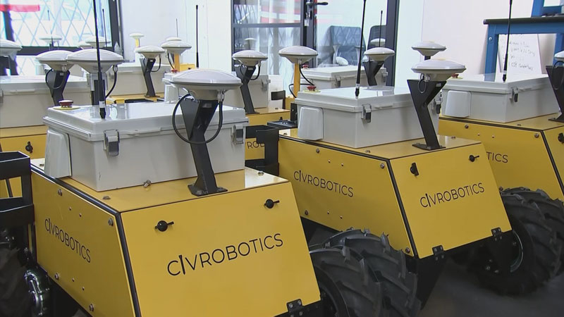 Equipes profissionais de levantamento topográfico em terrenos acidentados dificilmente conseguem fazer mais de 350 marcas em um dia de trabalho. Os robôs sobre rodas CivDot, da empresa californiana Civ Robotics, criados para as mesmas tarefas, podem fazer pelo menos 1.250 marcas cada um ao mesmo tempo, com um erro de menos de 8 mm por medição. Eles não terão medo do mau tempo e não farão pausa para o almoço, embora também possam ter problemas com a capacidade de cross-country ao fazer marcas em terrenos muito acidentados.