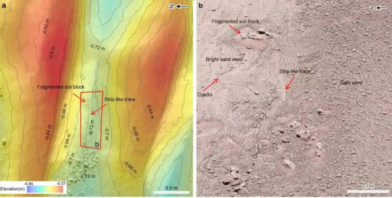 A informação é complementada pelas descobertas feitas por Zhuzhong. Como parte da missão de explorar Marte, ele pousou na superfície do planeta em 15 de maio de 2021 – na planície de Utopia. Usando as câmeras e sensores do rover, várias propriedades e composição das dunas na zona de pouso foram estudadas. A partir do caráter de crostas, fissuras, granulações, cristas poligonais e traços em forma de estrias, bem como da análise de dados espectrais, constatou-se que a camada superficial das dunas é rica em sulfatos hidratados, sílica hidratada, minerais de óxido férrico e possivelmente cloretos.