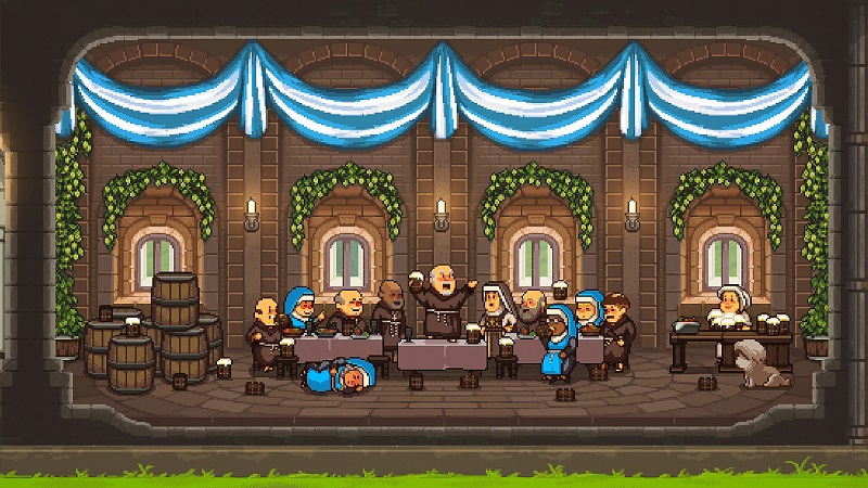 «Os alquimistas da cerveja são completamente livres em suas ações. É simples: preparar, beber e repetir. Bem-vindo à nossa abadia! — convida a página de Ale Abbey no Steam.