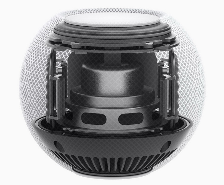 O HomePod mini usa três alto-falantes: um deles é direcionado para baixo e reproduz baixas frequências, alguns outros, de banda larga, são colocados nas laterais. O design acústico da novidade é adaptado para som no modo “360 graus” e é complementado por um sistema inteligente de aprimoramento de som.