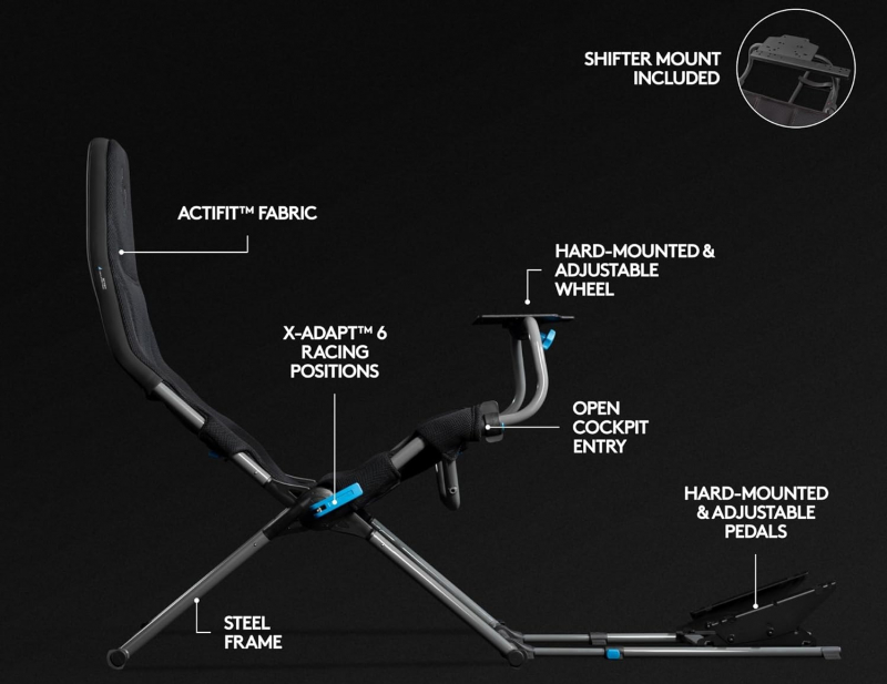A Logitech lançou um assento dobrável compacto, o Playseat Challenge X – Logitech G Edition, para fãs de simuladores de corrida que têm espaço limitado e não podem se dar ao luxo de instalar um cockpit de corrida completo.