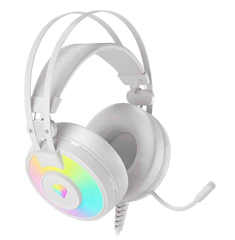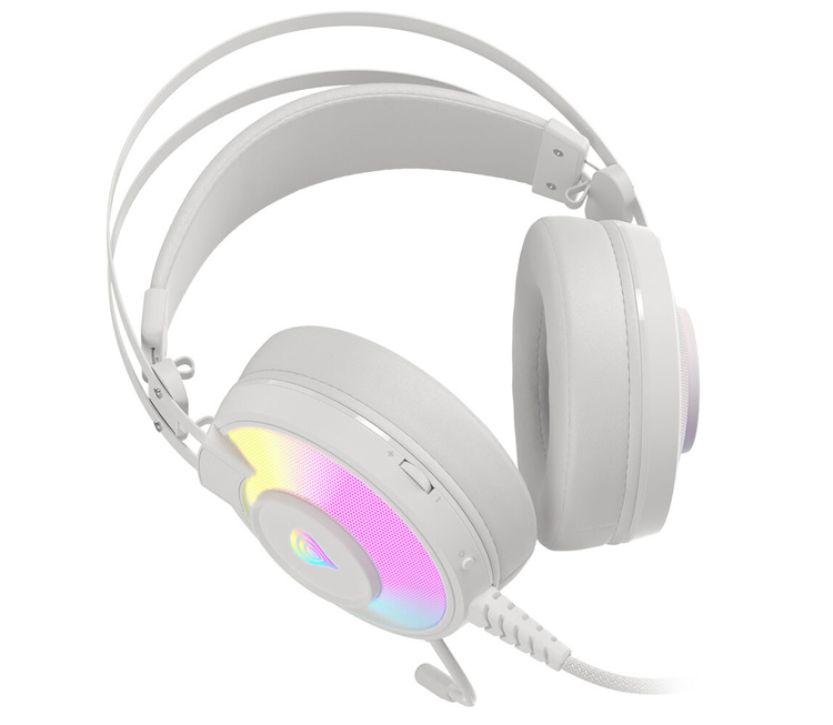 A novidade é toda feita na cor branca: vale para fita de cabeça, protetores auriculares, microfone e cabo de conexão. Retroiluminação multicor implementada com vários modos de operação, que podem ser alternados através de um botão especial.
