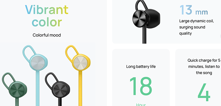 Os fones de ouvido são colocados nas orelhas com um gancho de silicone macio. Cada fone de ouvido possui um driver dinâmico de 13 mm e um ímã. Quando os fones de ouvido são conectados, a reprodução é pausada e, quando os fones de ouvido são divididos, a reprodução é retomada.
